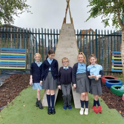 We are very lucky to have such amazing outdoor spaces in Abbey! We have a great Eco Garden, named "The Enchanted Woods". On our bank we have a large poly-tunnel, we can grow our own fruit and vegetables in here. There are lots of playgrounds and an outdoor classroom, allowing us to take our learning outside!